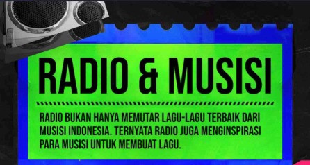 Updated 4 years ago. 05, Apr 2021 Radio & Musisi Radio Bukan Hanya Memutar Lagu-Lagu Terbaik Dari Musisi Indonesia. Ternyata Radio Juga Menginspirasi Para Musisi Untuk Membuat Lagu.
